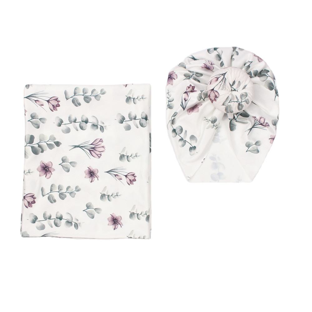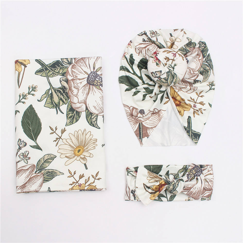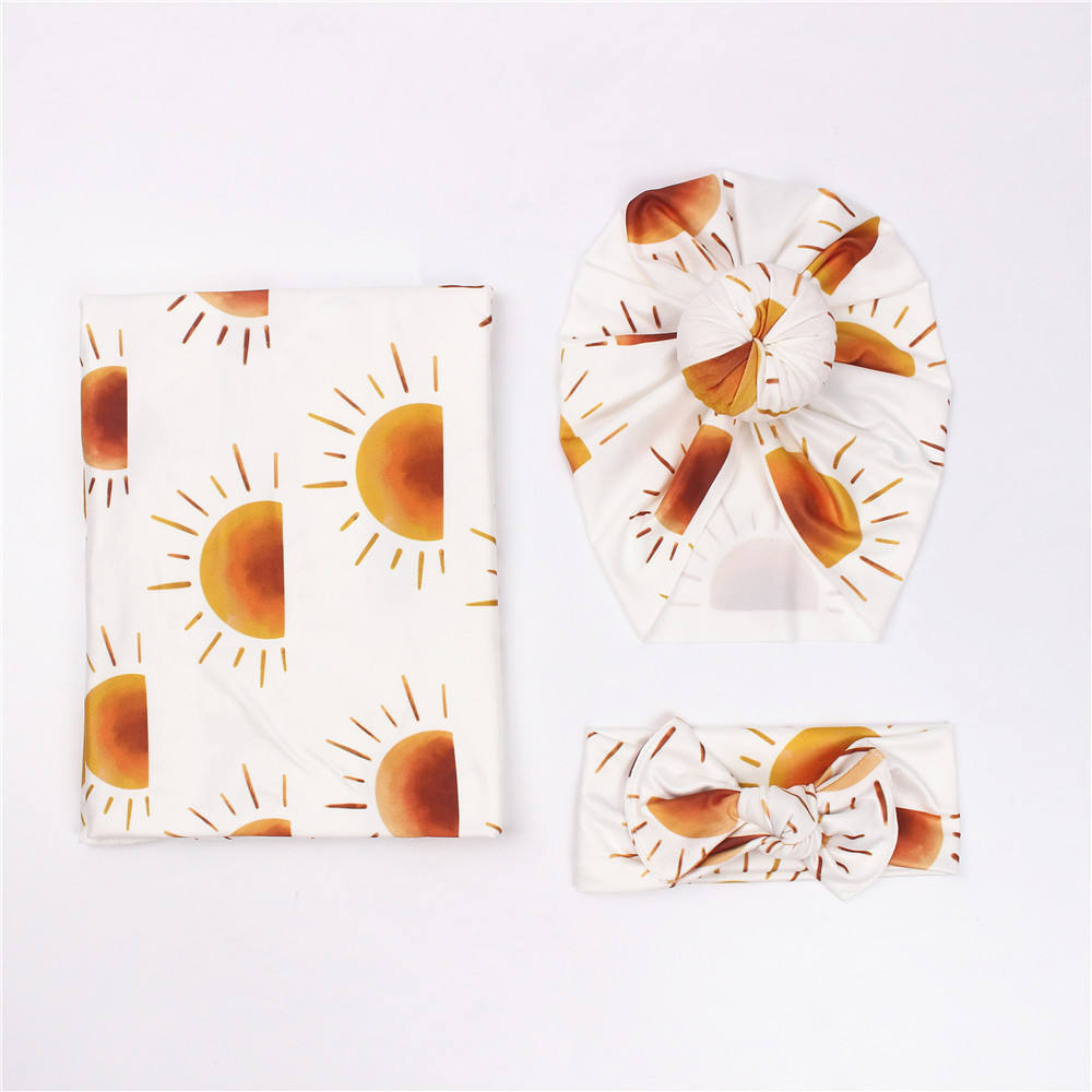 Baby Print Doughnut Hat, Headband Blanket, Three-piece Set, Shock Proof Swaddling Wrap