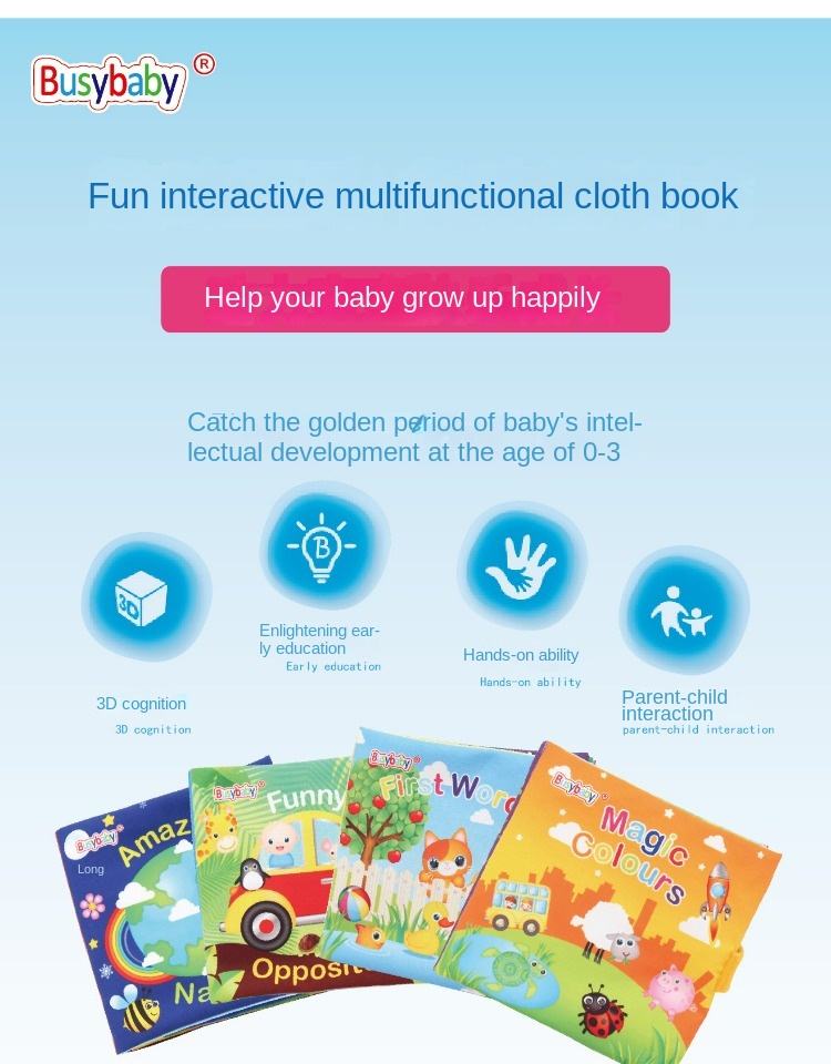 Home » Shop » Cuddle & Play » Cloth Book » Busybaby Infant Early Education Square Cloth Book 0-3 Years Old Baby Biteable Tear-Proof with Ringing Paper Cloth Book