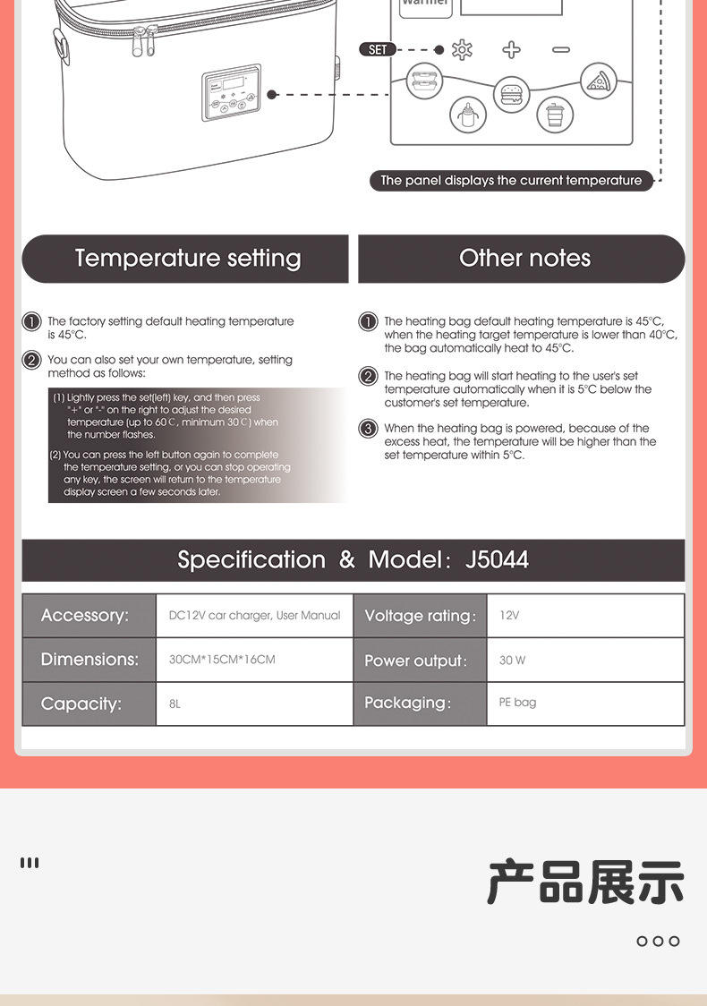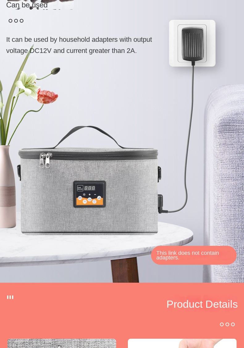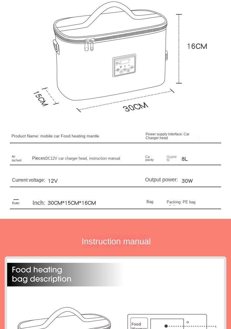 Car Feeding Bottle Heating Insulated Bag Outdoor Portable Lunch Box Warmer Milk Warmer Temperature Adjustable