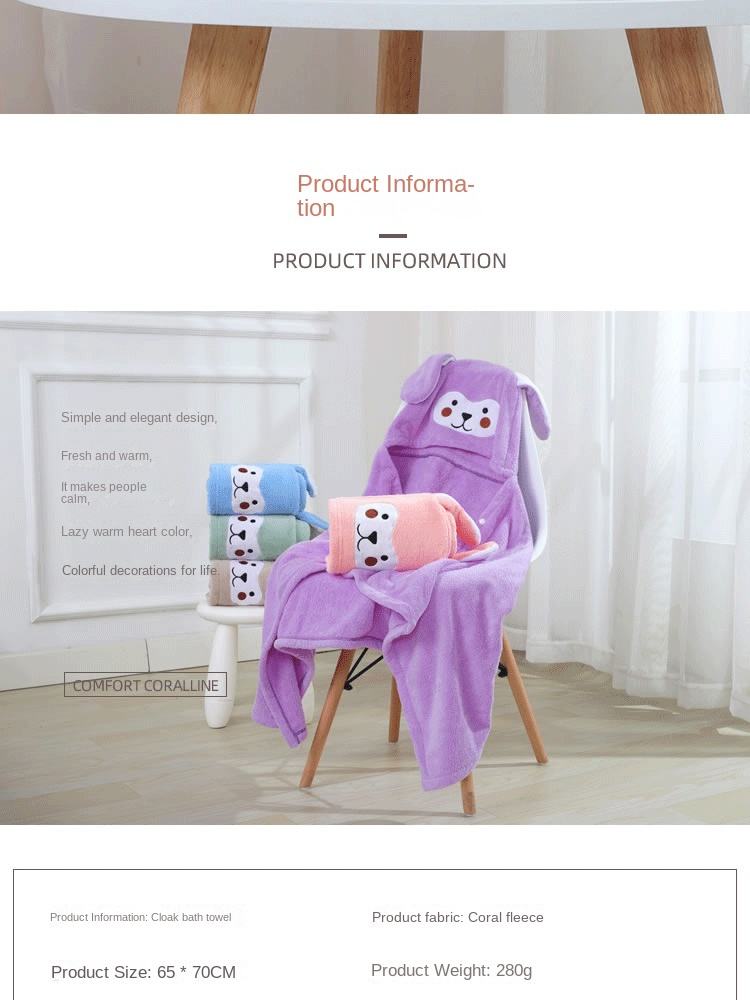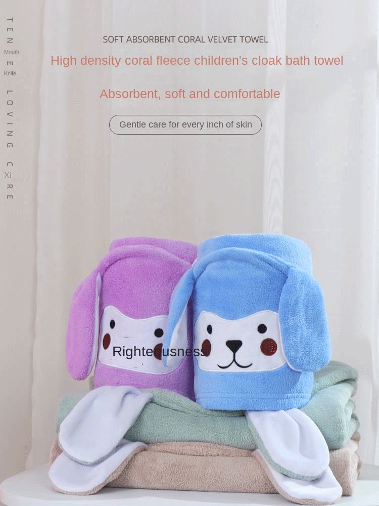 Coral Fleece Hood Cloak Baby Coral Fleece Bathrobe Children's Cloak Absorbent Baby's Blanket Cartoon Cross-Border Wholesale