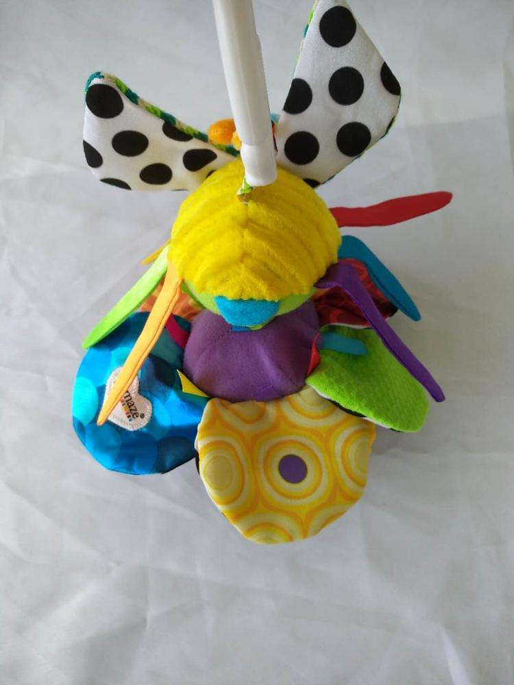 Details:pull bee away bee wings and petals,plush tentacle,colorful bee legs,two bright rings,wow ,bee is flyling.the middle of flower,a rattle inside.