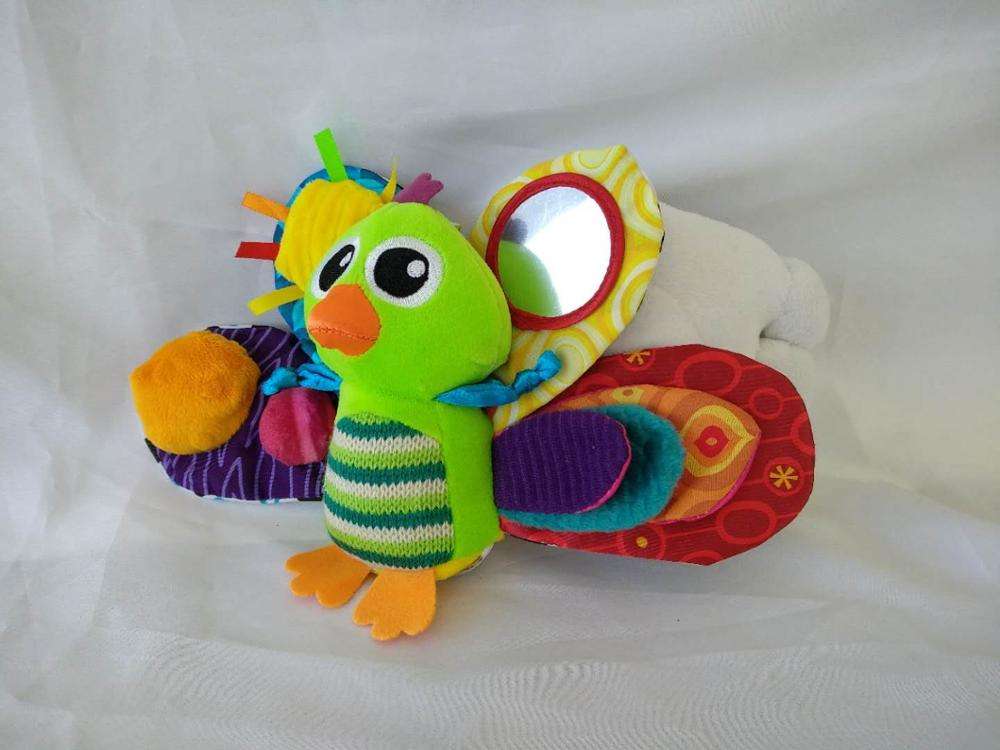 Details:using many material,make product vivid.mirror,squeaker,rattle,noisy wings and arms,though a toy, including so many function,colorful color matching,cute mouth,you can't help loving it.