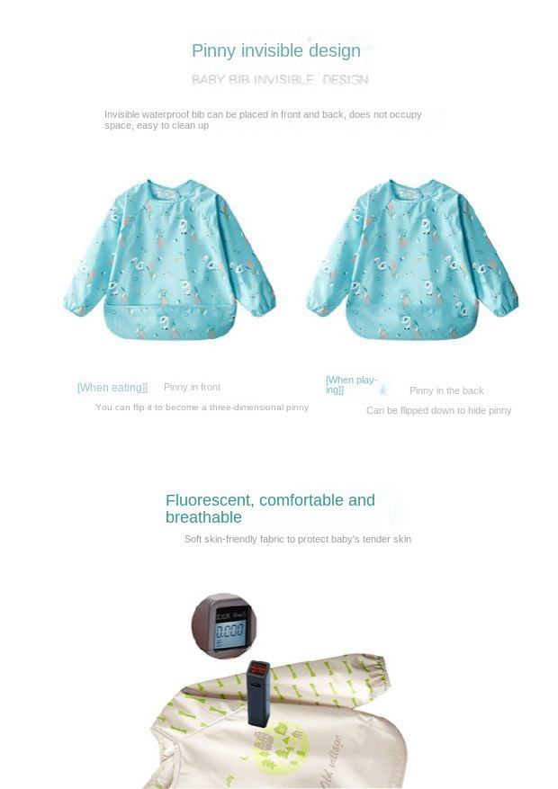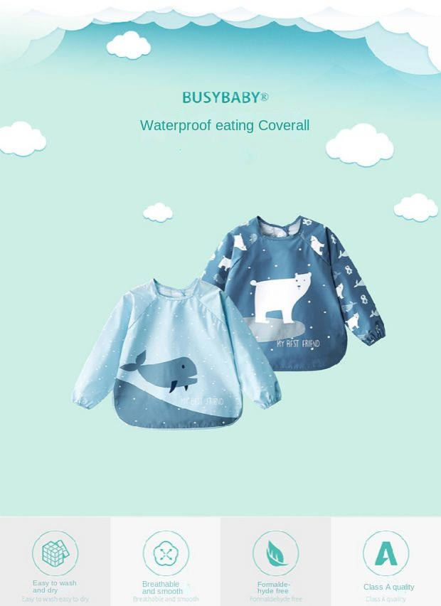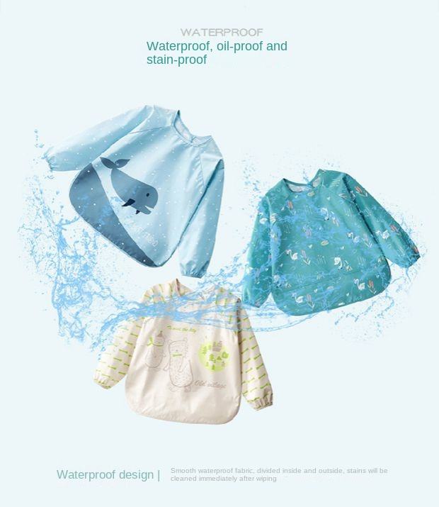 Wear Long Sleeve Wear Baby Eat Overalls Baby Waterproof Dirt-proof Bib Reverse Dressing